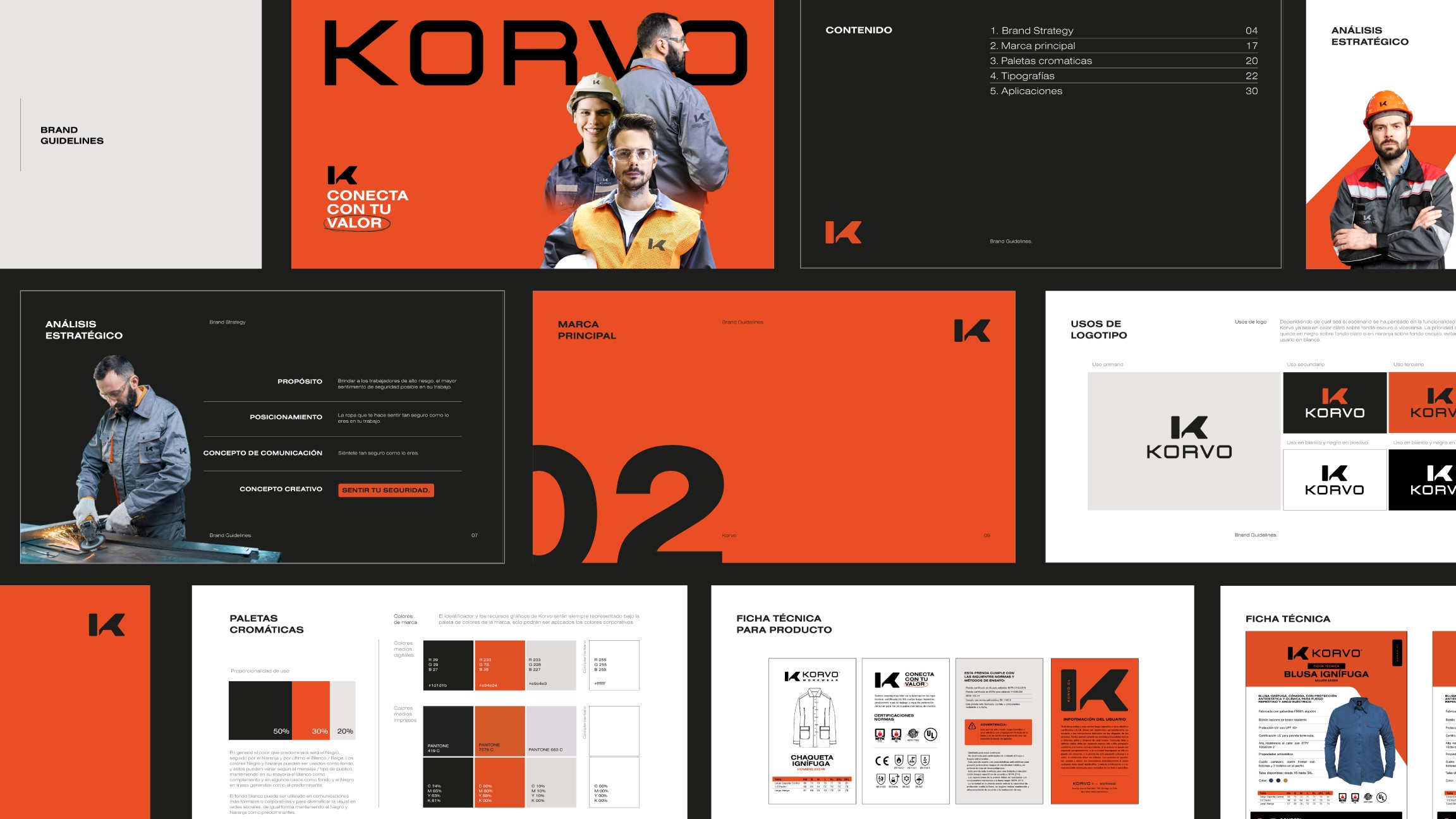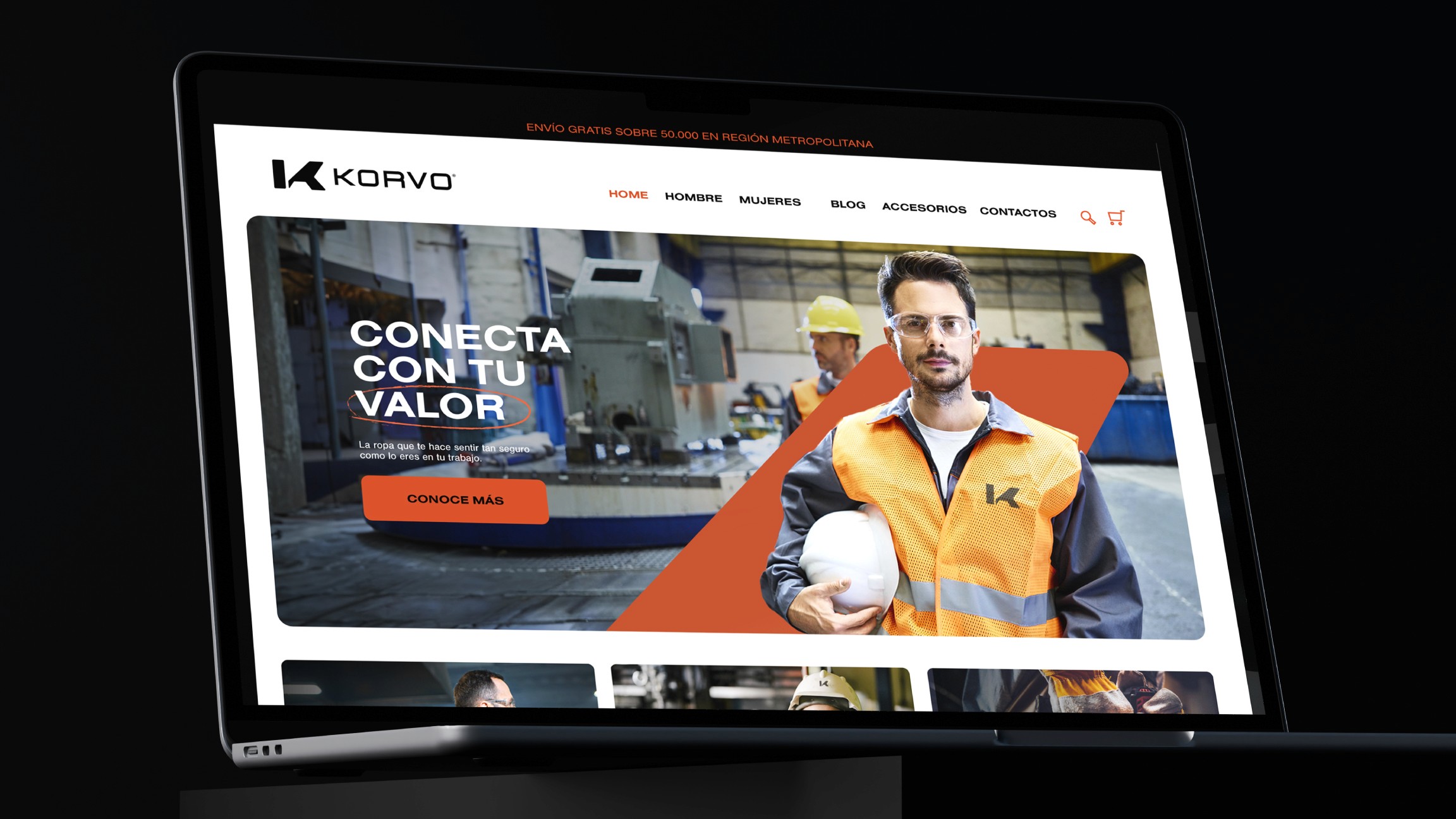 El resultado es una identidad visual coherente, distintiva y con propósito, que posiciona a Korvo desde un enfoque más contemporáneo dentro del mundo del workwear.
