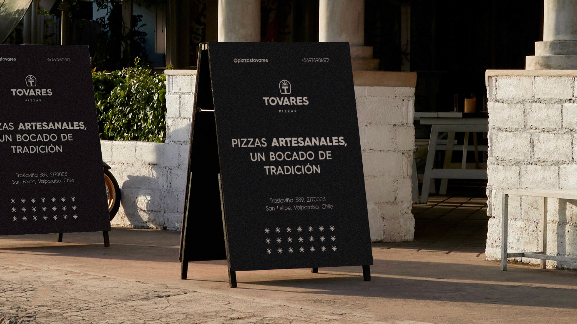 El resultado es una identidad visual renovada, elegante y con personalidad propia. El logotipo integra símbolos ligados al oficio pizzero con un sello distintivo que refuerza los valores de Tovares: calidad, respeto y un servicio acogedor. De esta forma, la pizzería queda preparada para proyectar una imagen coherente con su propuesta, destacando no desde la competencia, sino desde su estilo auténtico y cercano.